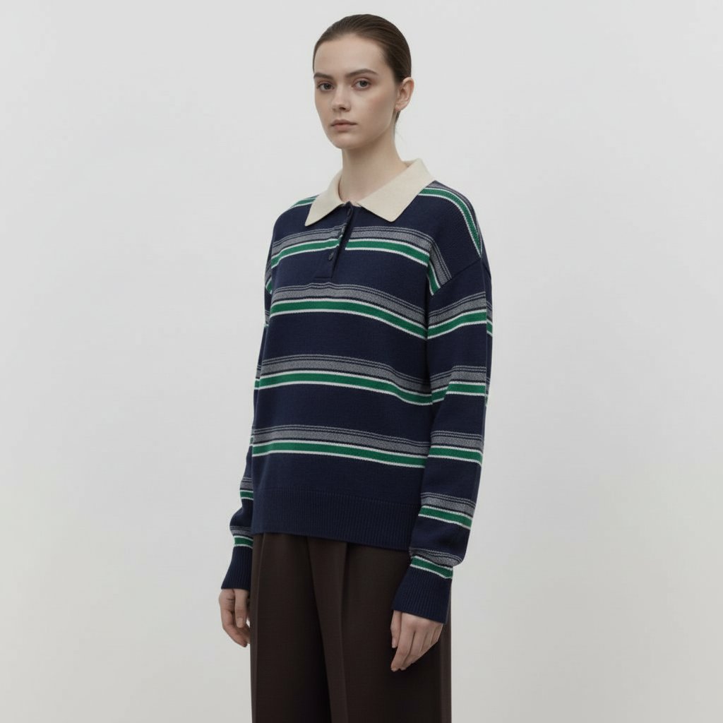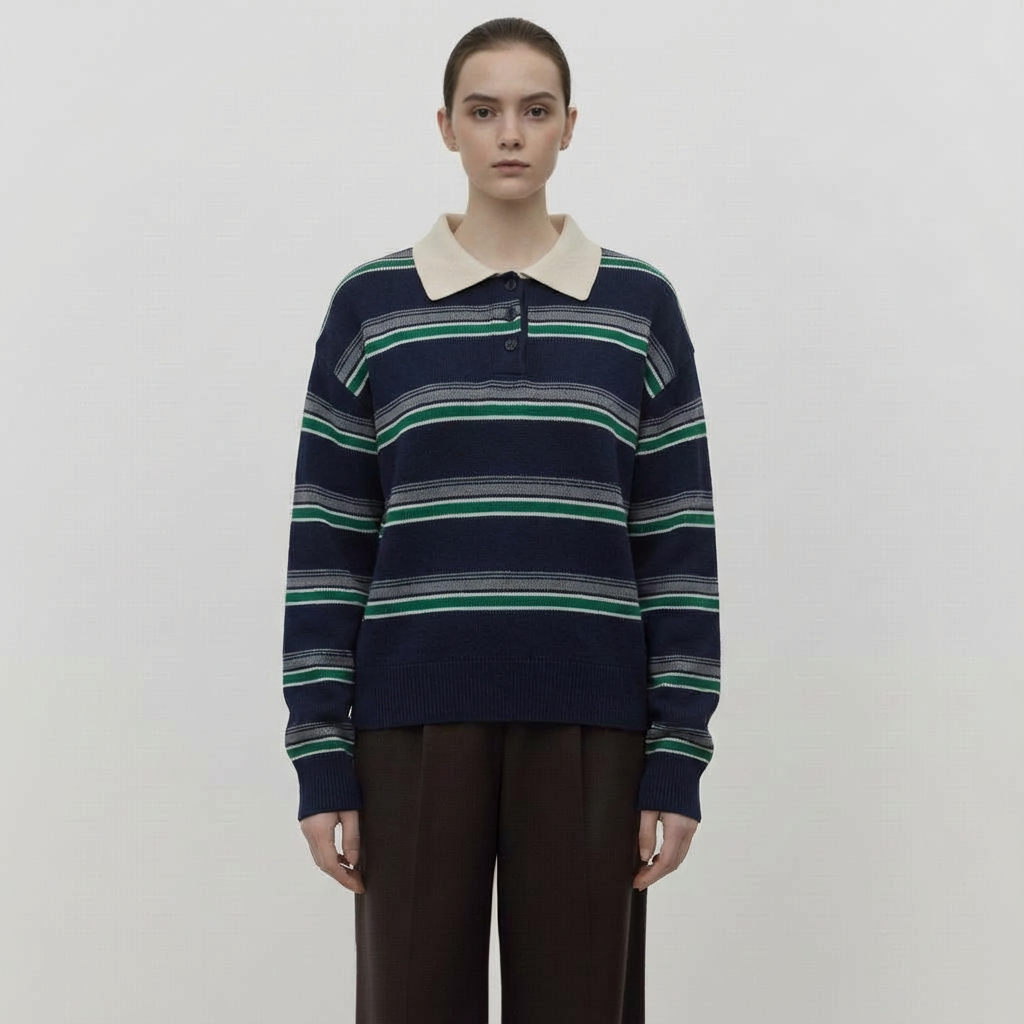 스트라이프 울 카라티셔츠