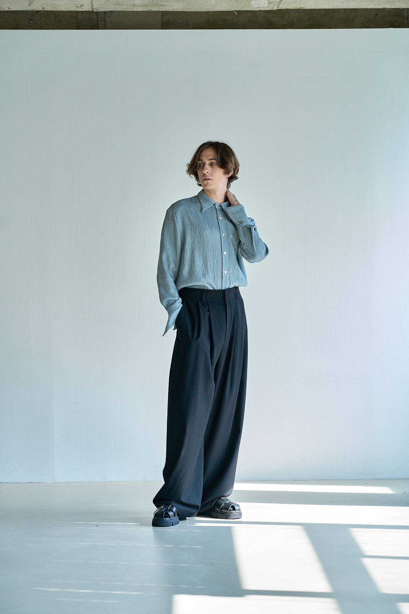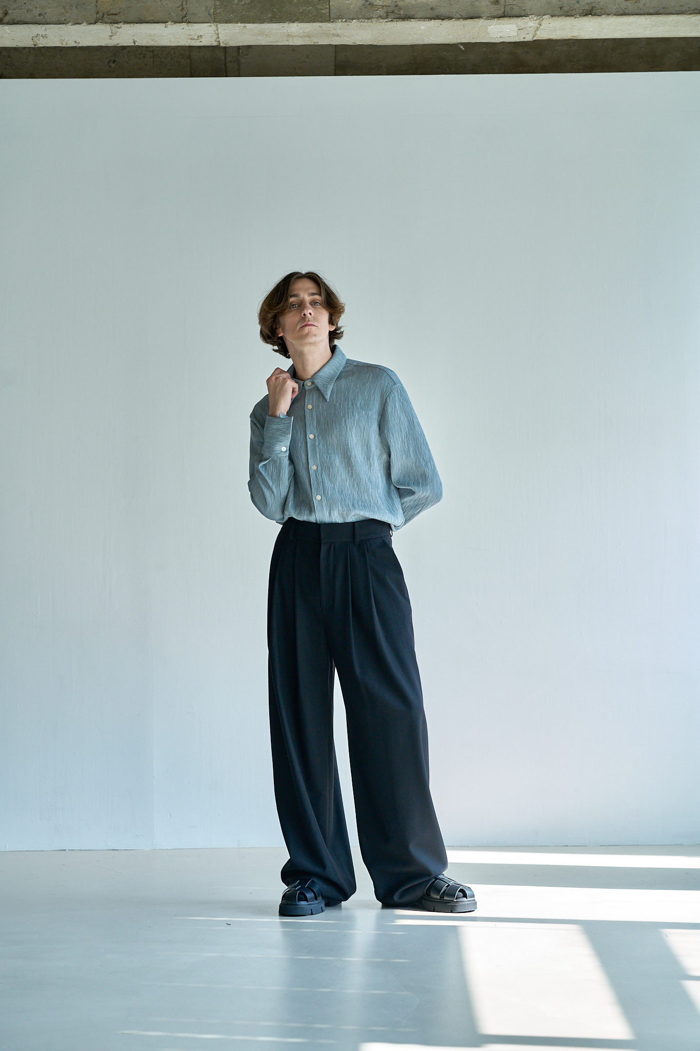 - 플리츠 빅카라셔츠_스카이블루